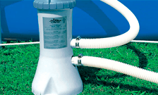 В катриджных фильтрующих насосах в качестве основного элемента очистки используется сменный картридж. Такие элементы можно легко заменить по мере загрязнения. Конструкция имеет форму цилиндра и изготовлена из так называемого «бумажного» материала. Такое название дали люди за пористую структуру, визуально напоминающую картонную бумагу, пушистым веером выложенную вокруг оси. Материал отличается повышенной прочностью.